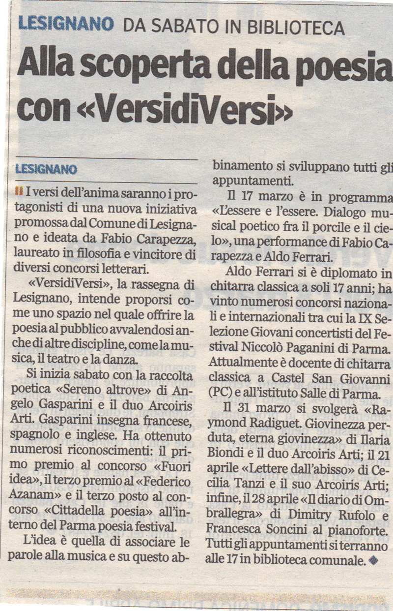Gazzetta di Parma - Versi diVersi - 15 marzo 2012